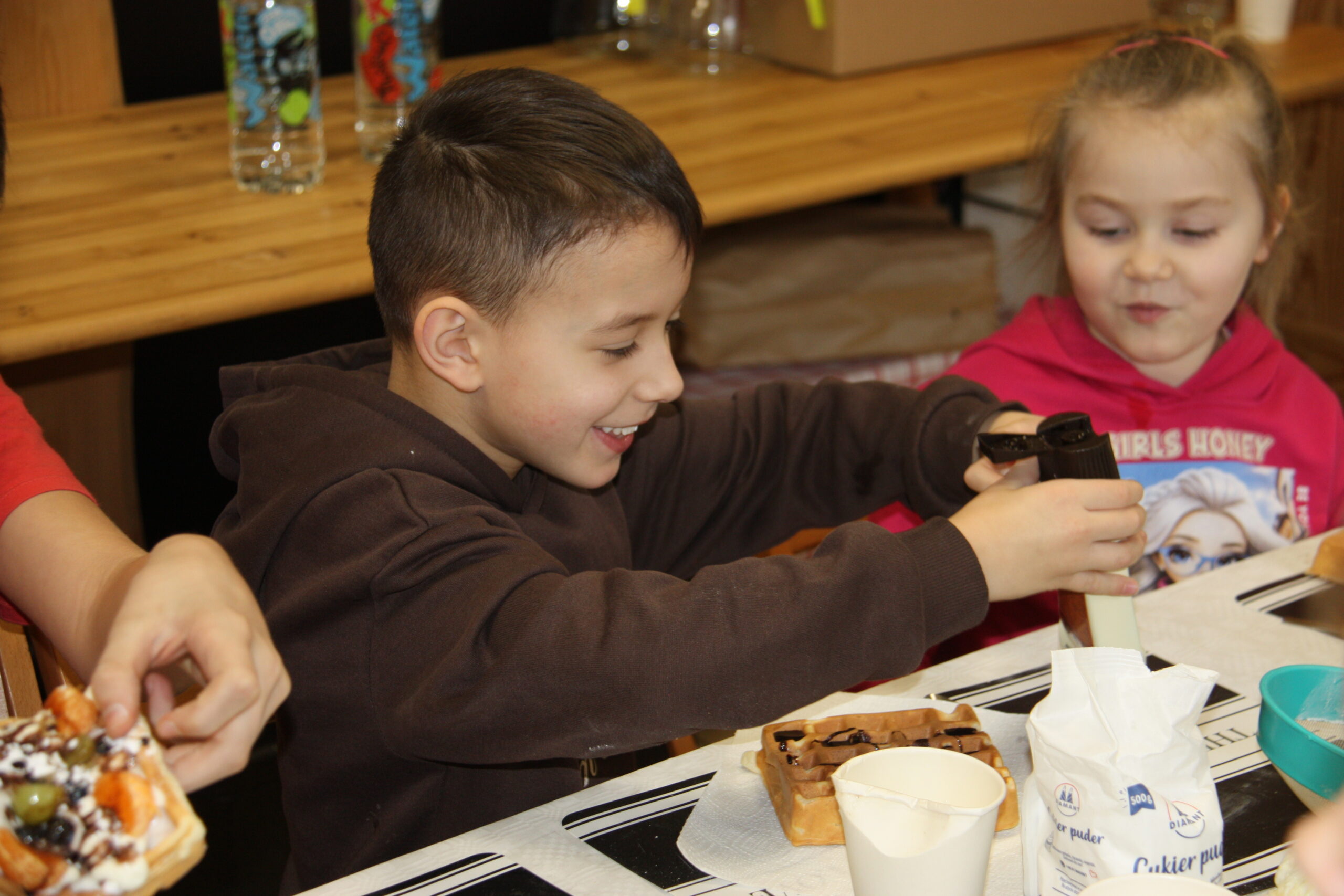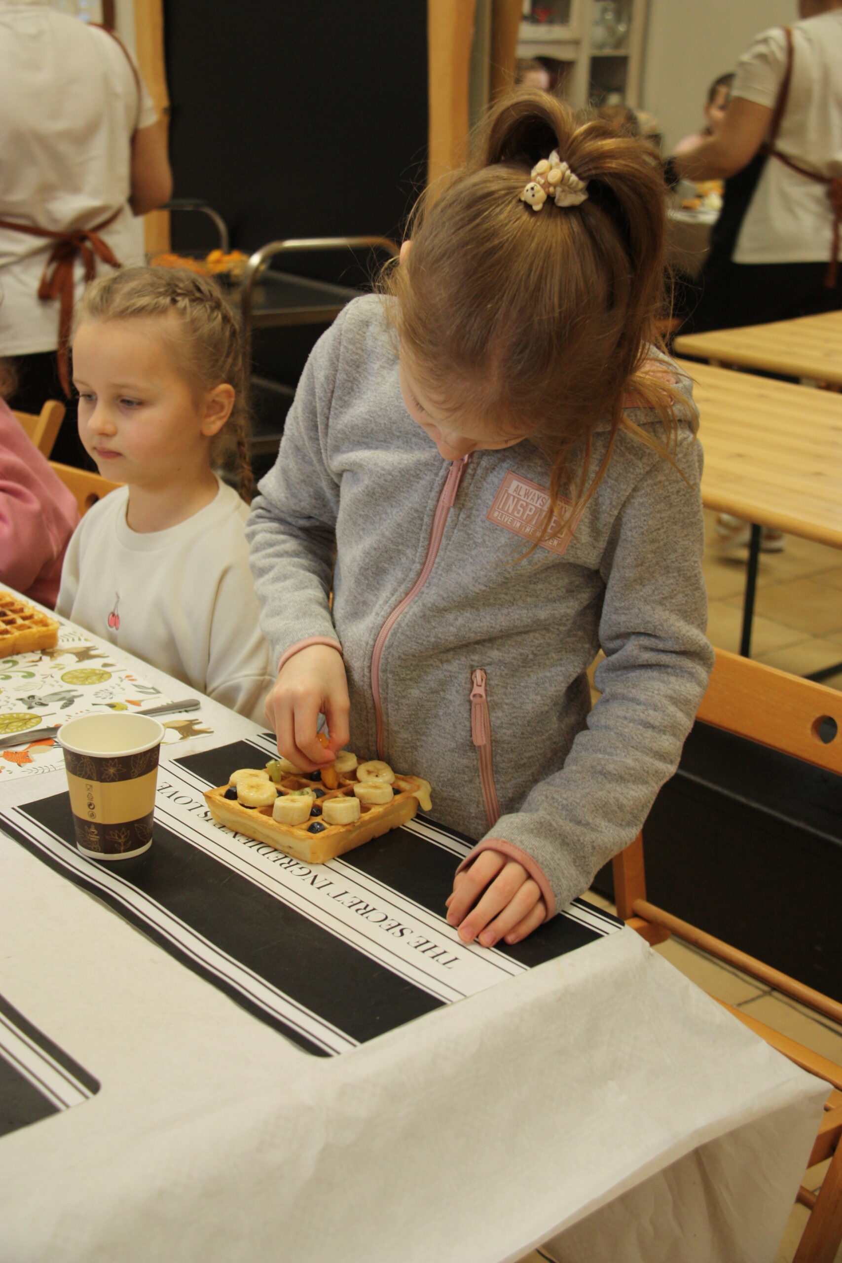 🧇 Warsztaty kulinarne – pachniało świeżymi goframi, a mali kucharze z zaangażowaniem przygotowywali i dekorowali swoje słodkie wypieki.