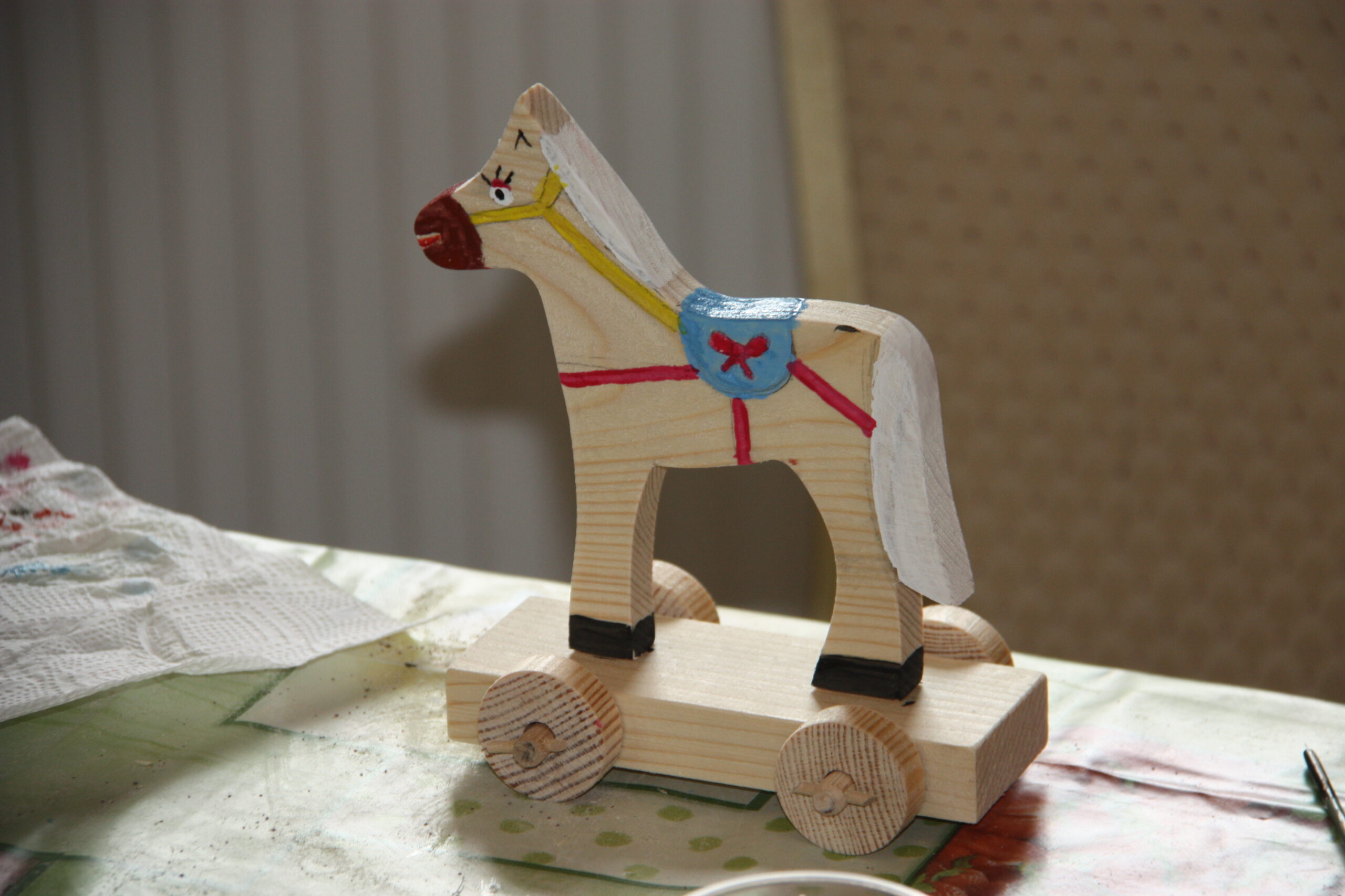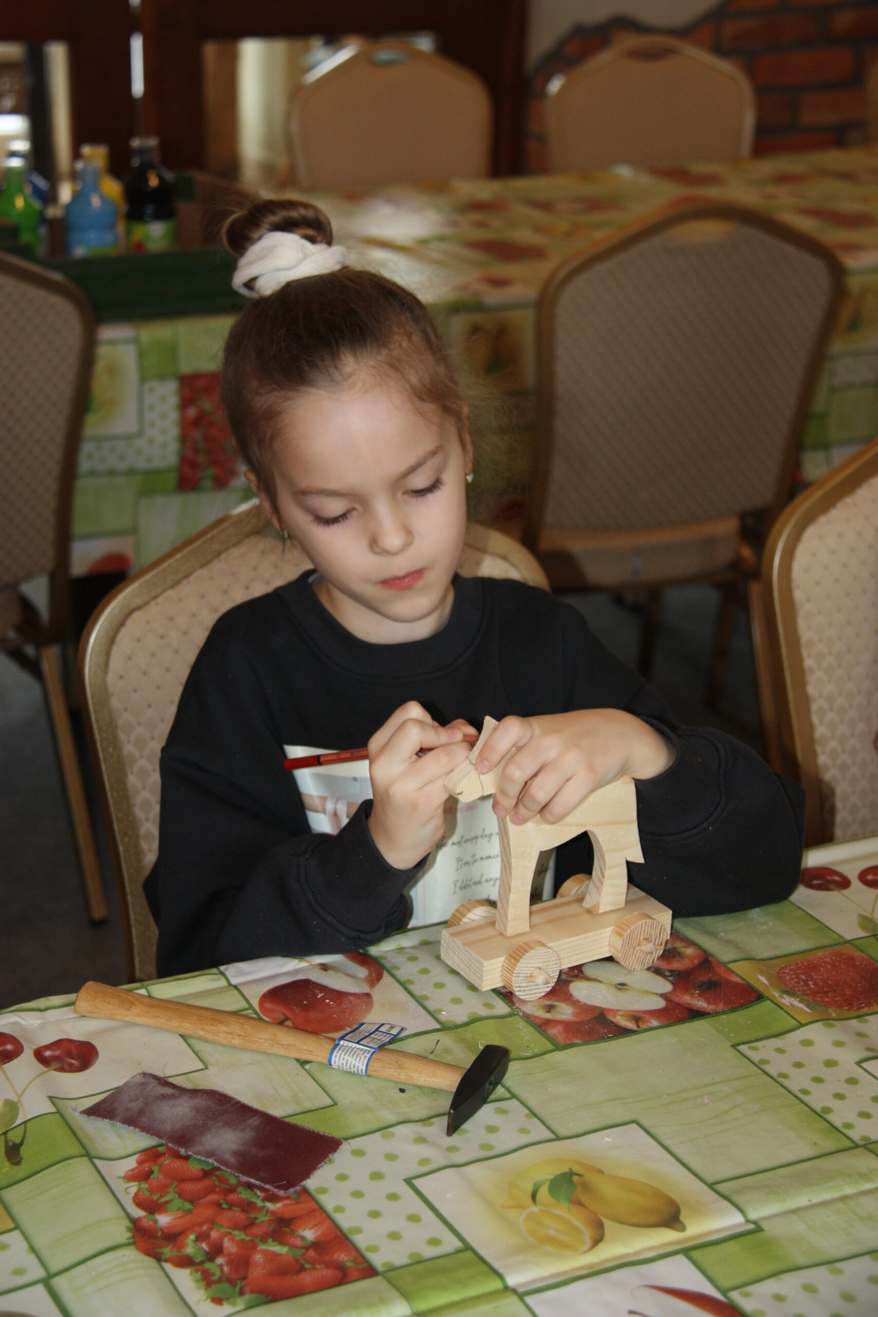 🐴 Rękodzieło w drewnie – uczestnicy stworzyli wyjątkowe, drewniane jeżdżące koniki, ucząc się pracy z drewnem, malowania i zdobienia.